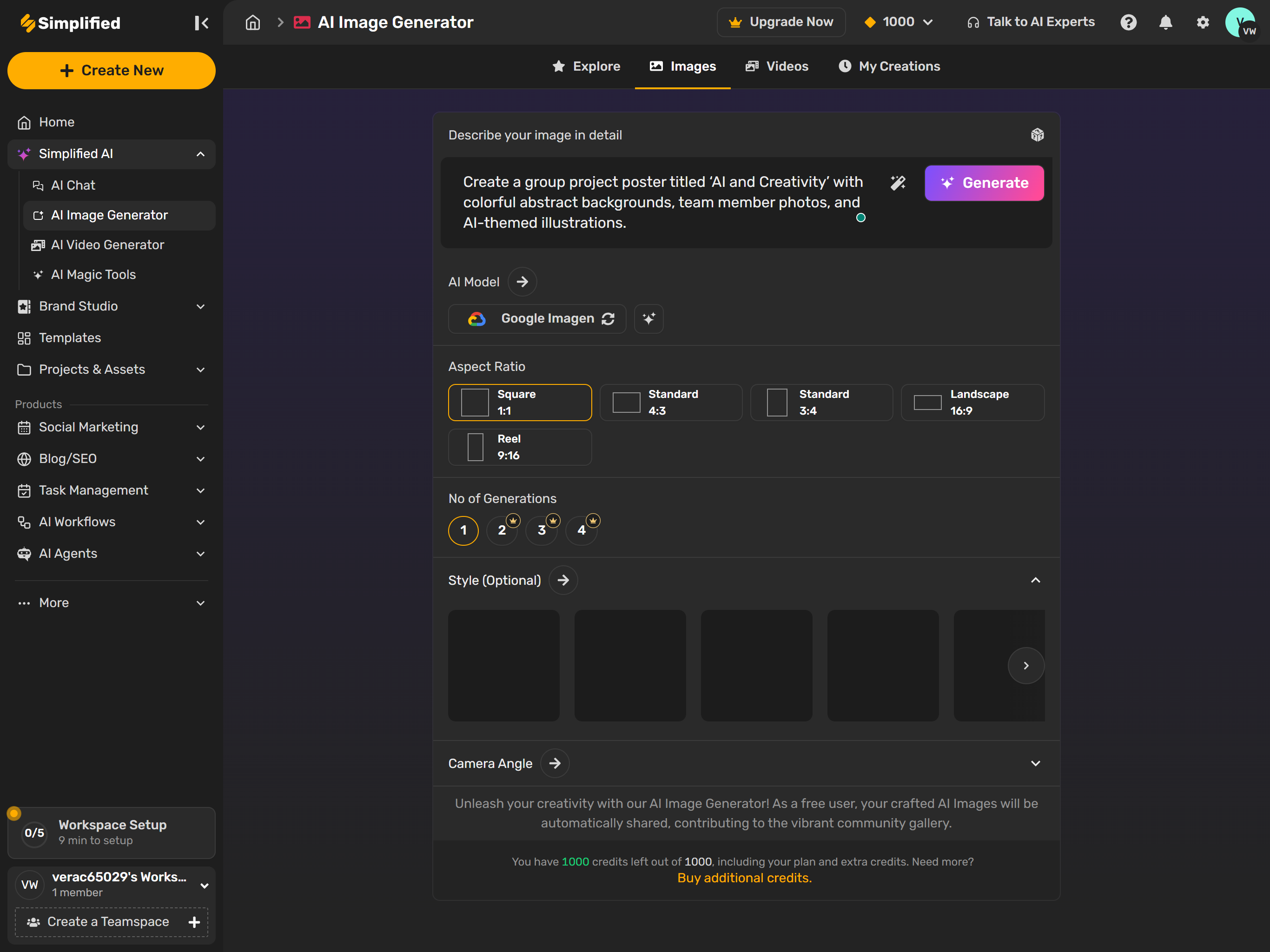 Simplified also combines the creation of text, video, and social content — all from one control panel. The teamwork feature allows different students to work on the same design together at the same time, which actually fits very well with group projects. The free plan unveils access to such tools as background remover, auto-sizing, and AI writing support, thus being one of the most adaptable graphic design AI tools for students.