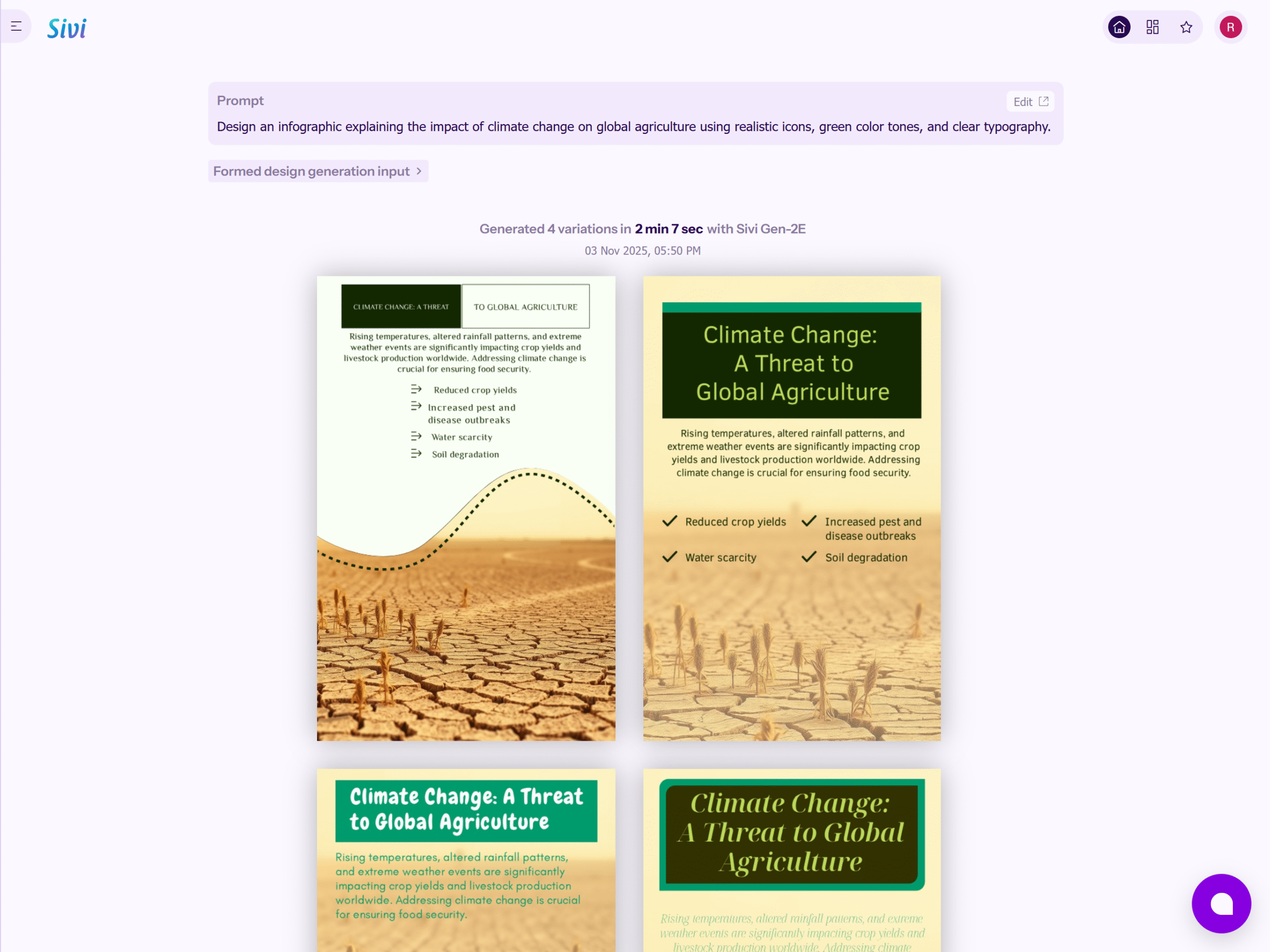 Sivi.ai is an advanced AI tool that significantly assists students with graphic design, turns plain text into fully editable designs, no templates required. You describe your need from a school science fair poster to a school science fair poster, and Sivi immediately gives you several layout options for easy customization.