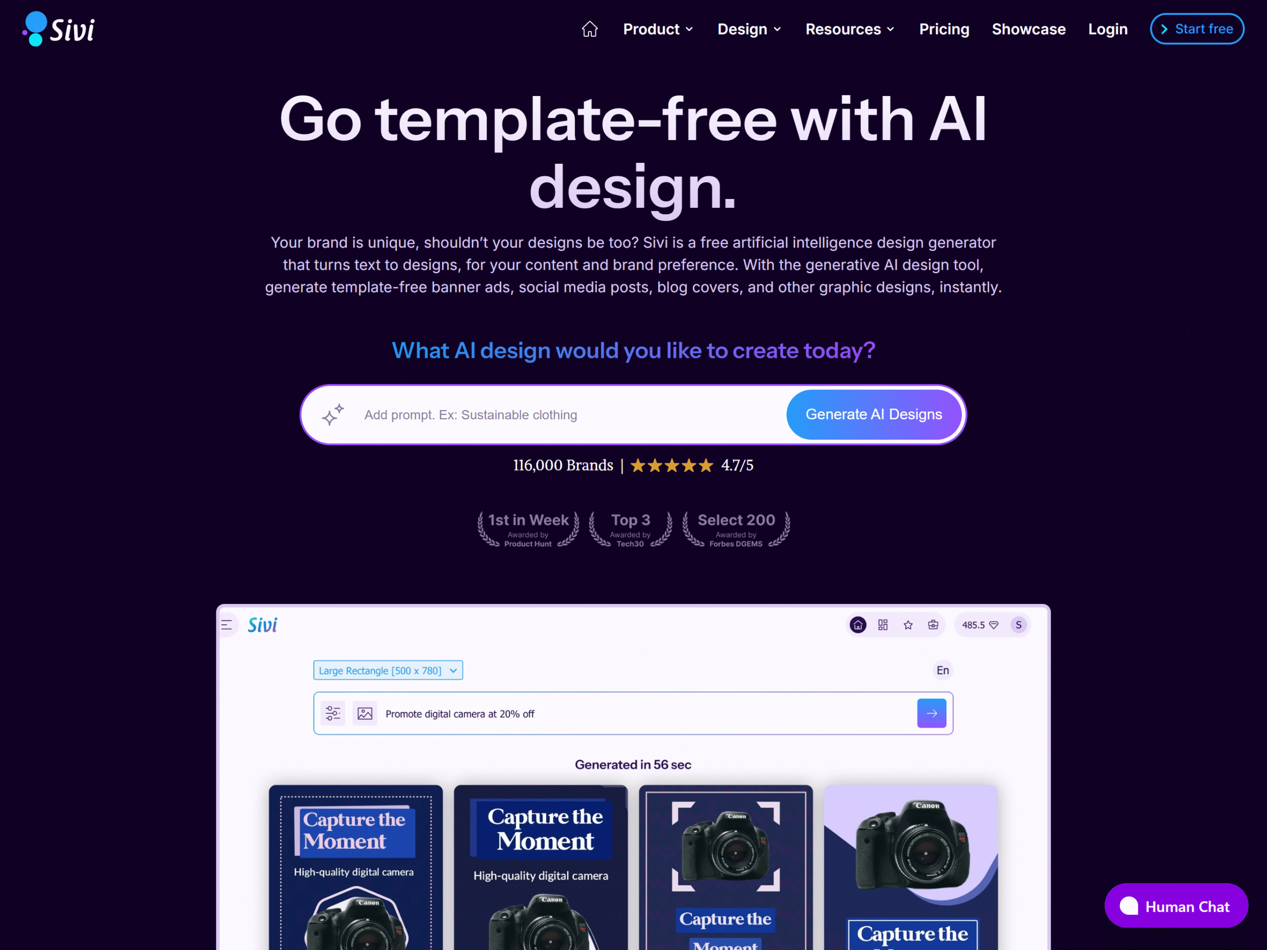 Sivi.ai | Template-free AI design | Unique visuals | ✅ | ❌ |
