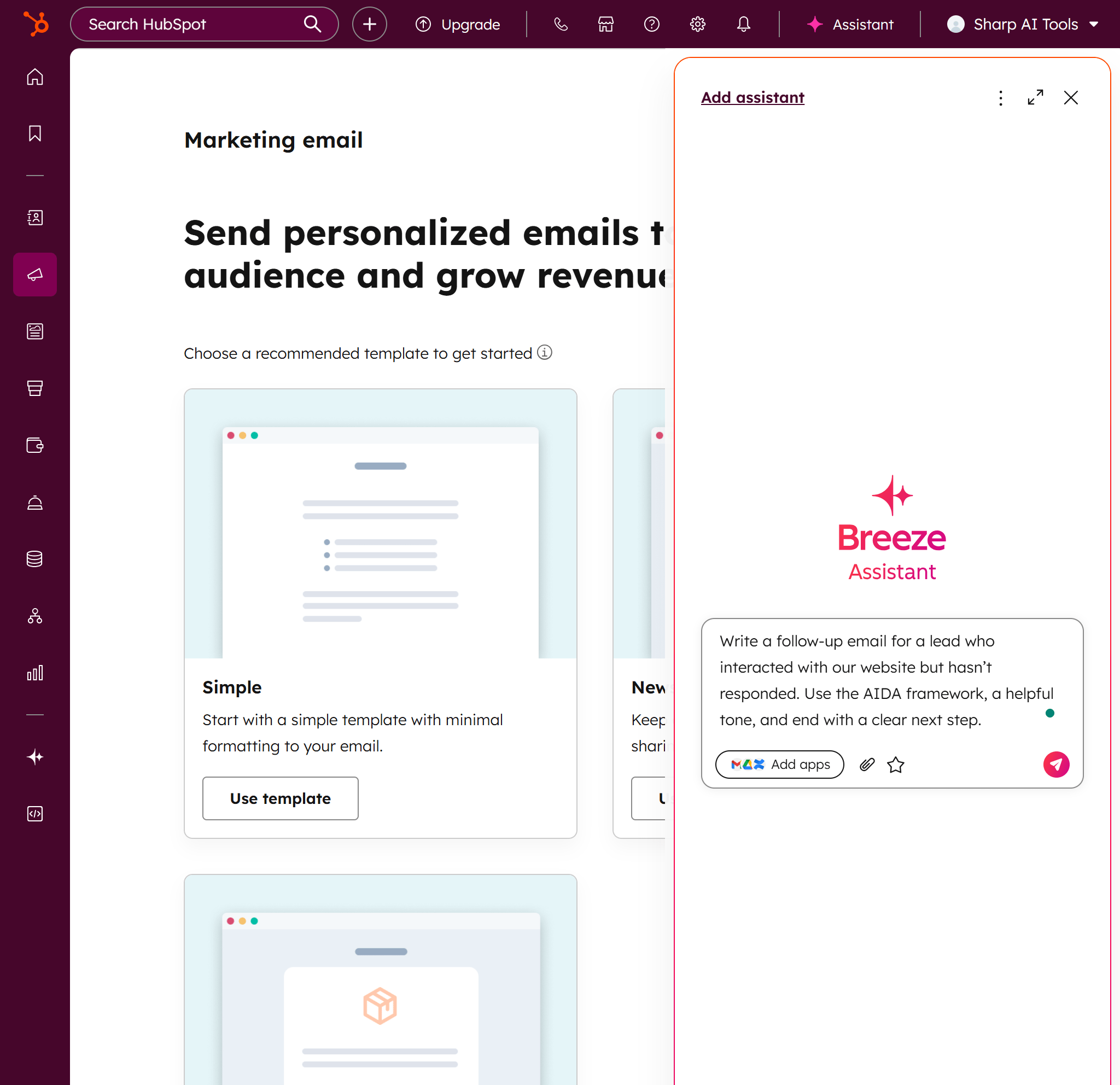 Nonetheless, the free version of HubSpot’s e-mail generator AI tool still has numerous templates to offer, even if there isn’t a complete CRM system set up, some of which are: