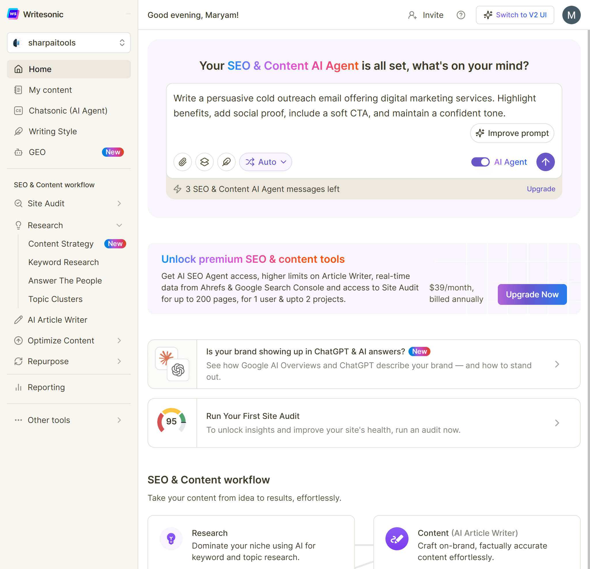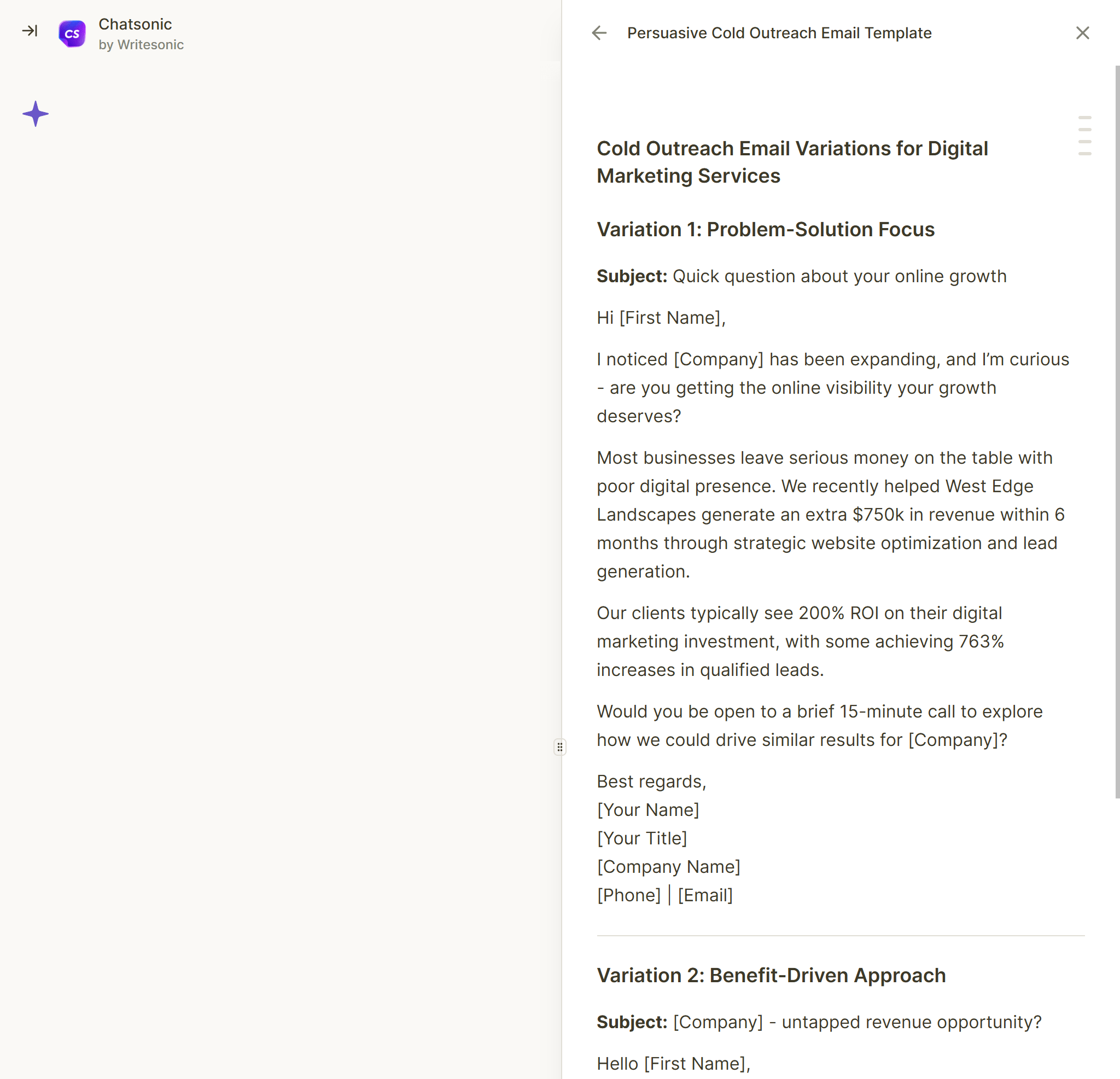 Writesonic is holding the reputation of being the powerhouse of AI writing, and in the future is being tagged as one of the supreme AI email generator tools for professionals in 2025. The email generation engine of this tool is capable of producing drafts that are professional in nature and very well structured.
