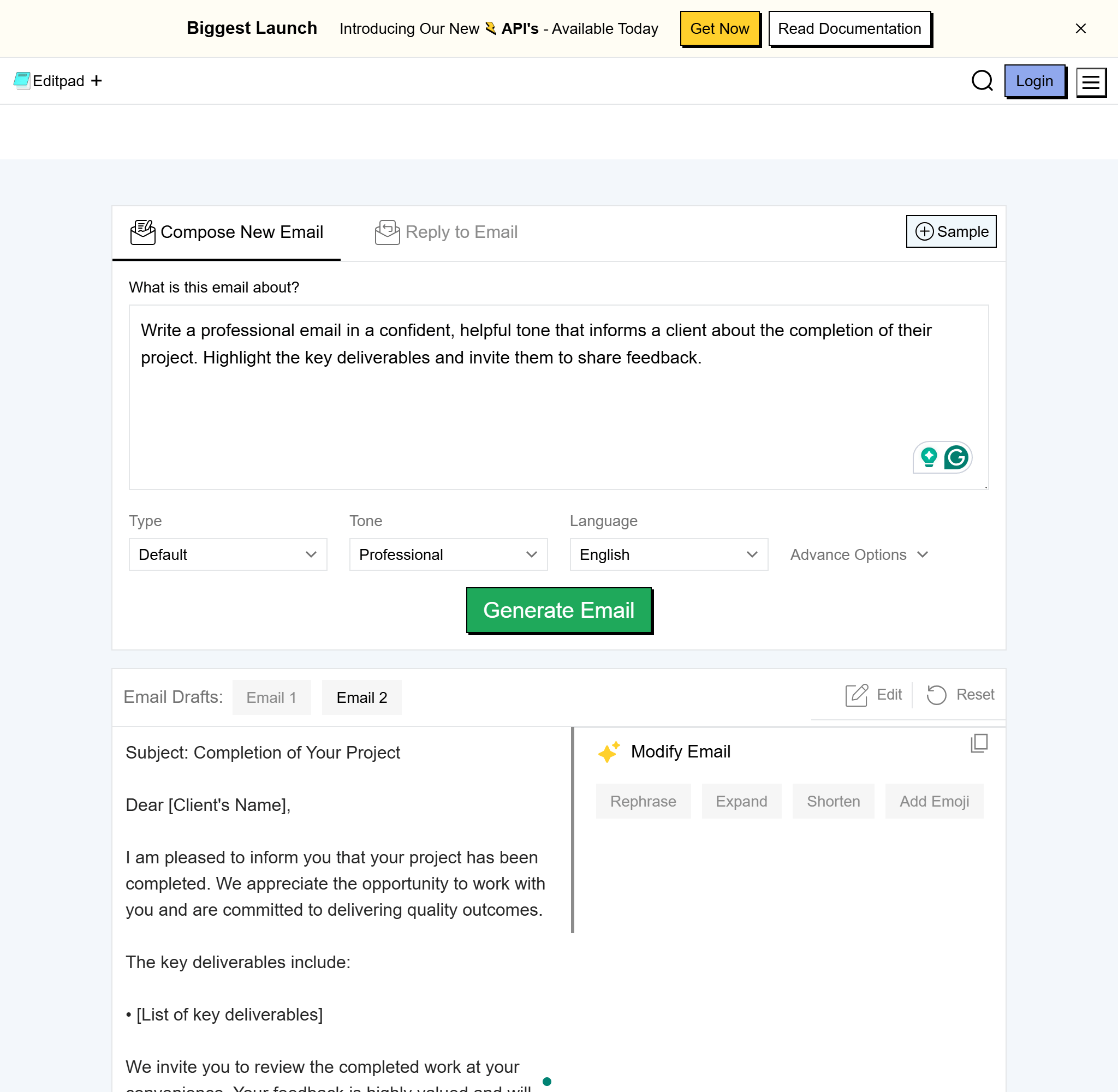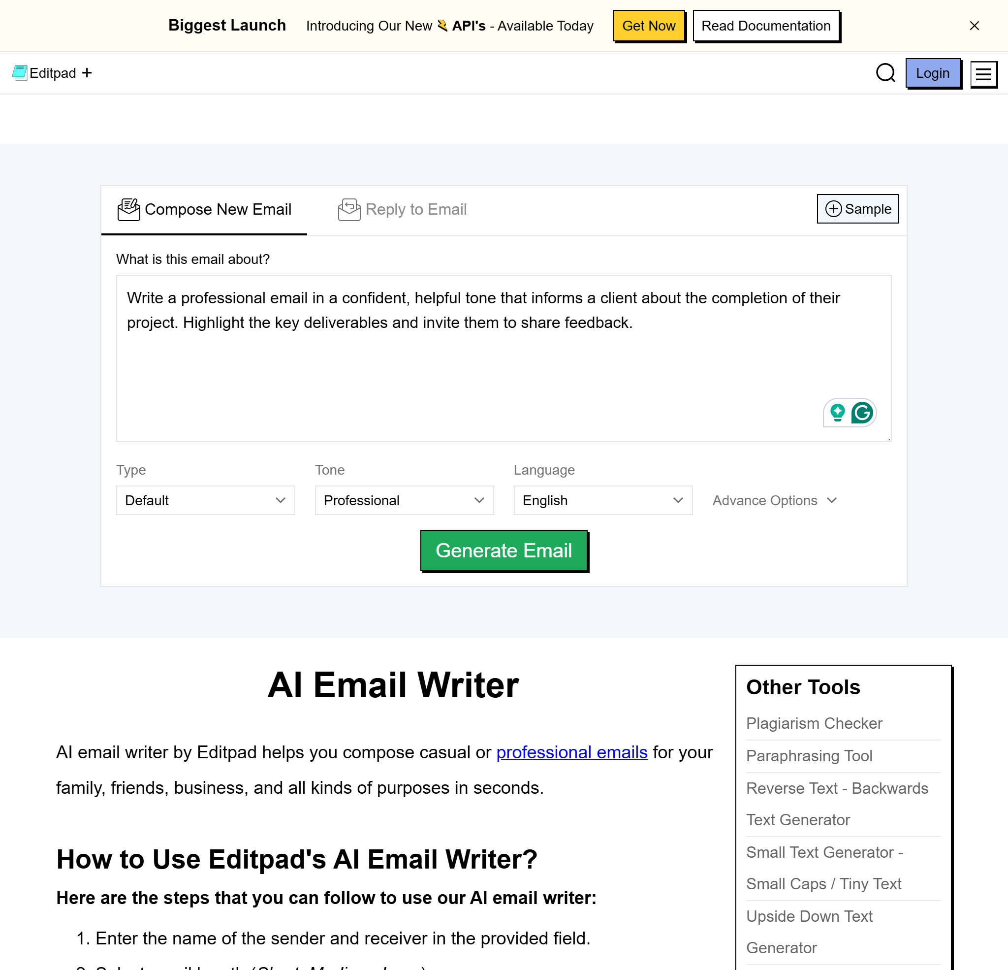 EditPad is not only famous for its features but also for its AI email generator free service that is very effective for professionals who need their email drafts clean, accurate, and polished. This tool puts emphasis on clarity, grammar, and structure, which, in turn, makes it excellent for writing professional letters with hardly any effort.